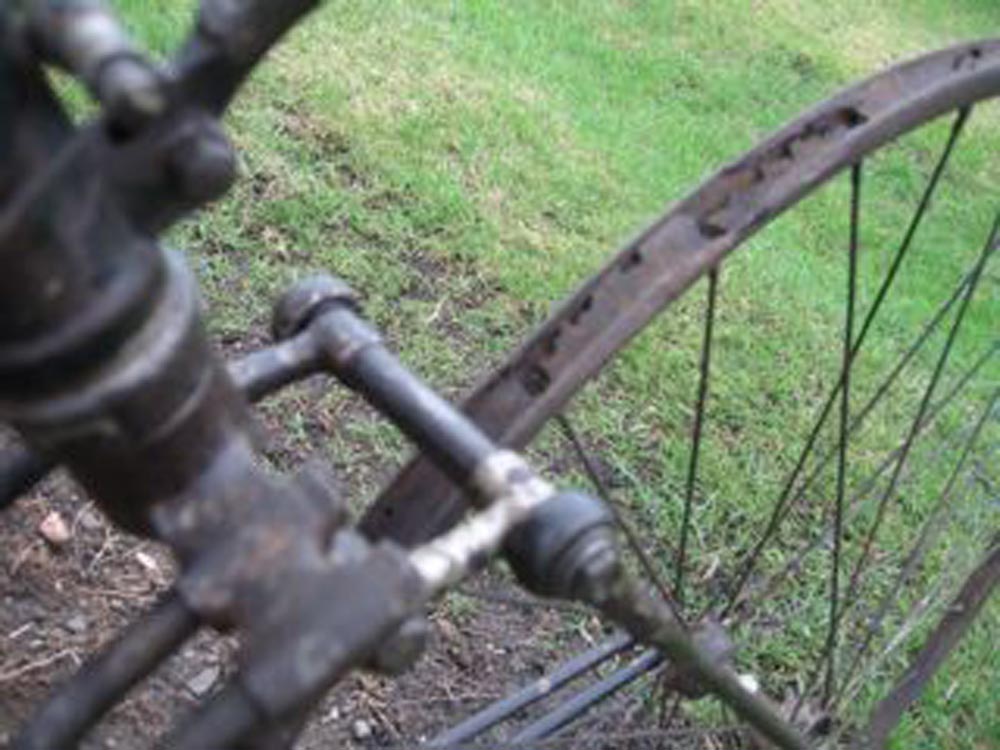 This bike was sold in 2011 on ebay.com. Enjoy all marvellous details! What a great and modern bike in 1889 - ball head, tangent spokes, Half Heart Suspension (HHS). And I love the spade grips, which were absolutely en vogue in the USA on the highwheels.